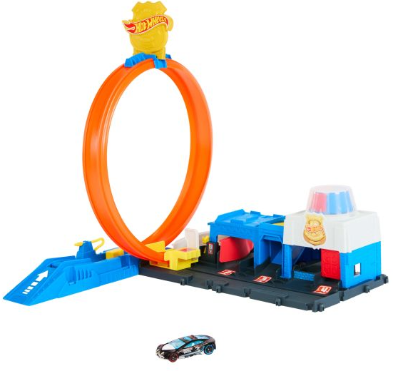 - Move the adjustable loop track to choose from 4 different outcomes in the Hot Wheels City Super Police Station playset!